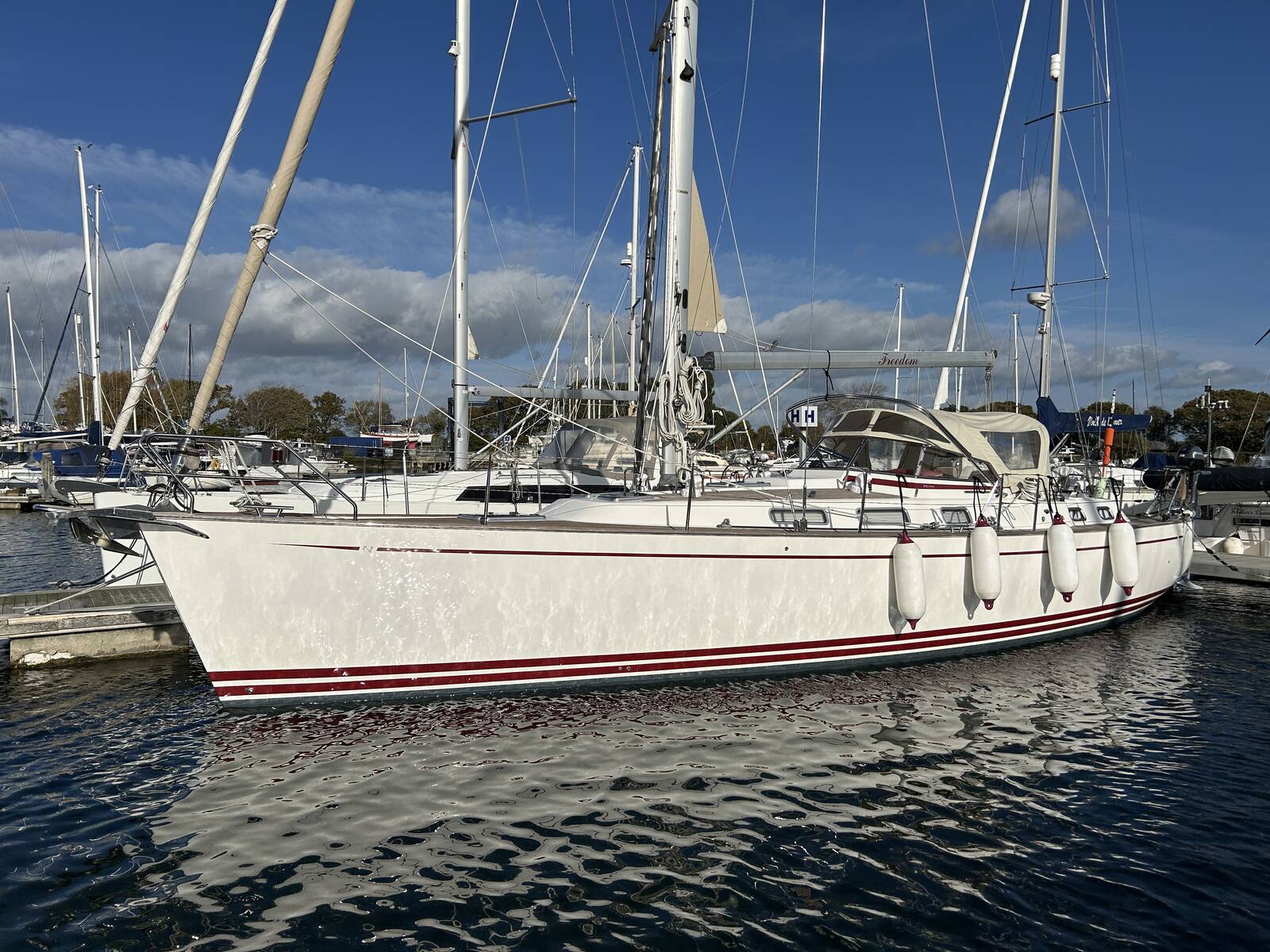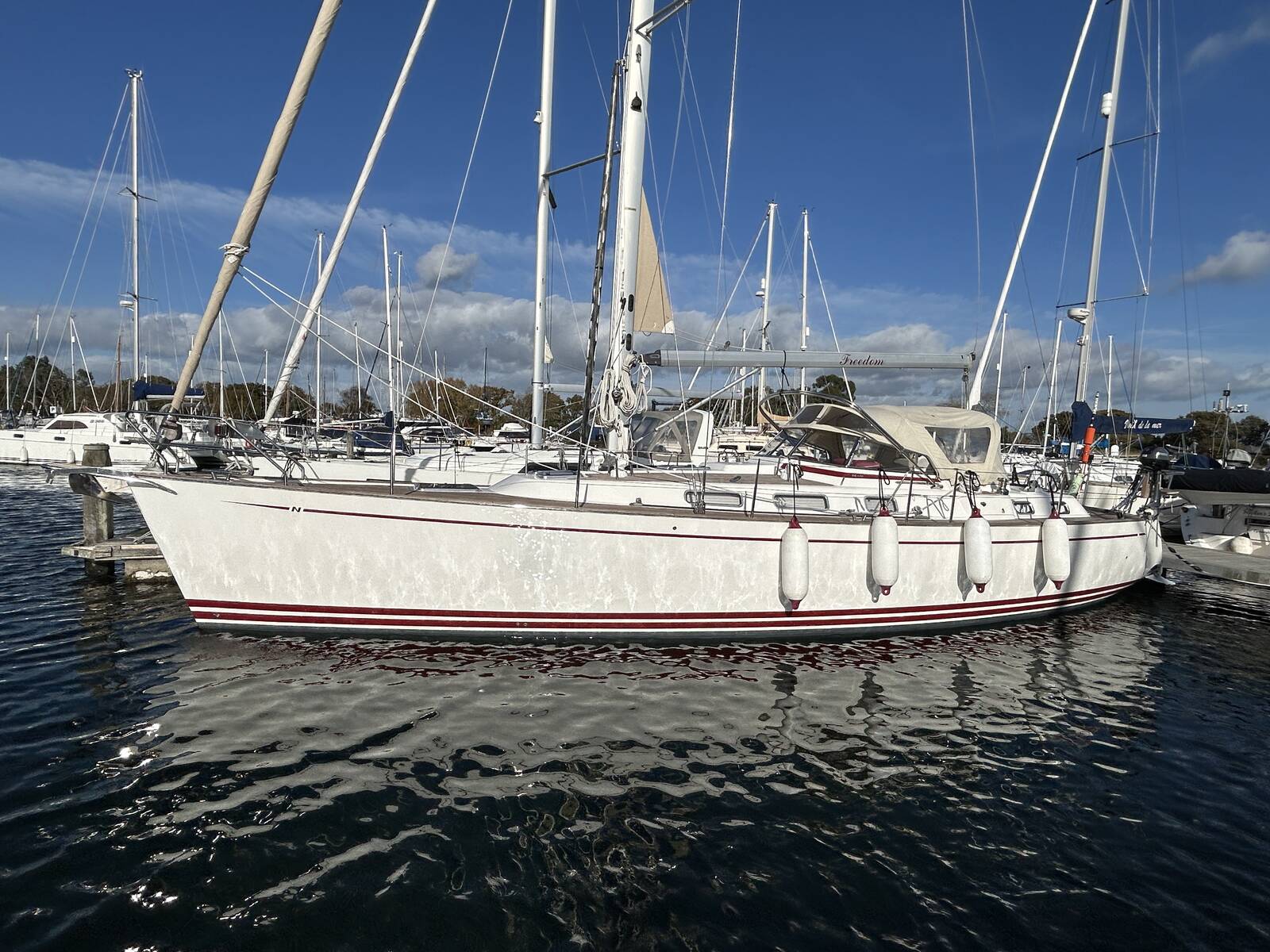 'Freedom' must be viewed to be fully appreciated and is an excellent example of this very capable blue water cruiser constructed by one of the worlds leading boat yards in high-quality cruising yacht construction. She won't be around for long and not one to be missed.
