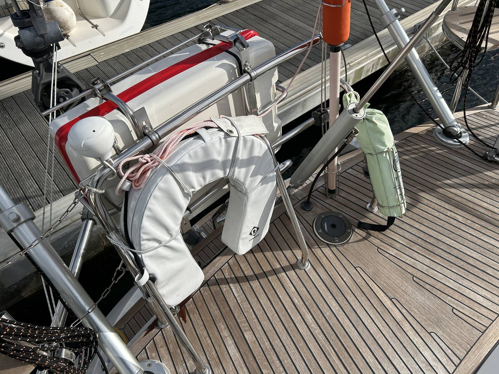 Life raft on pushpit bracket Plastimo, serviced.