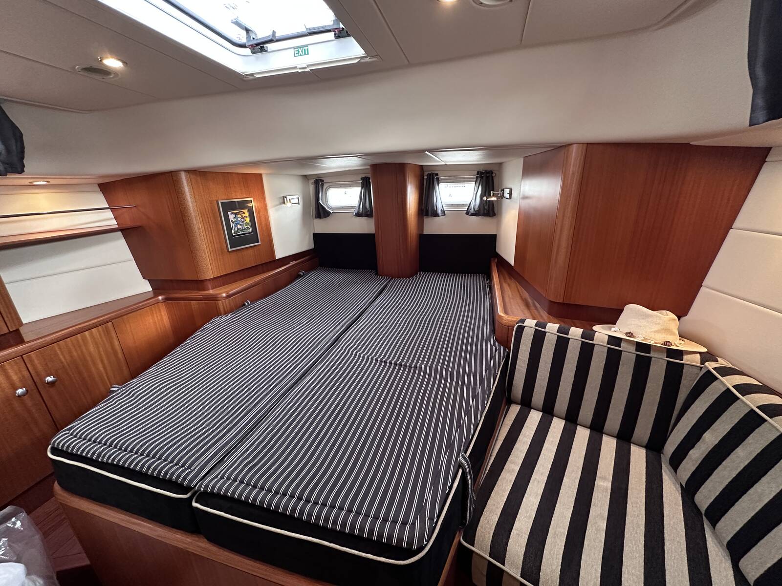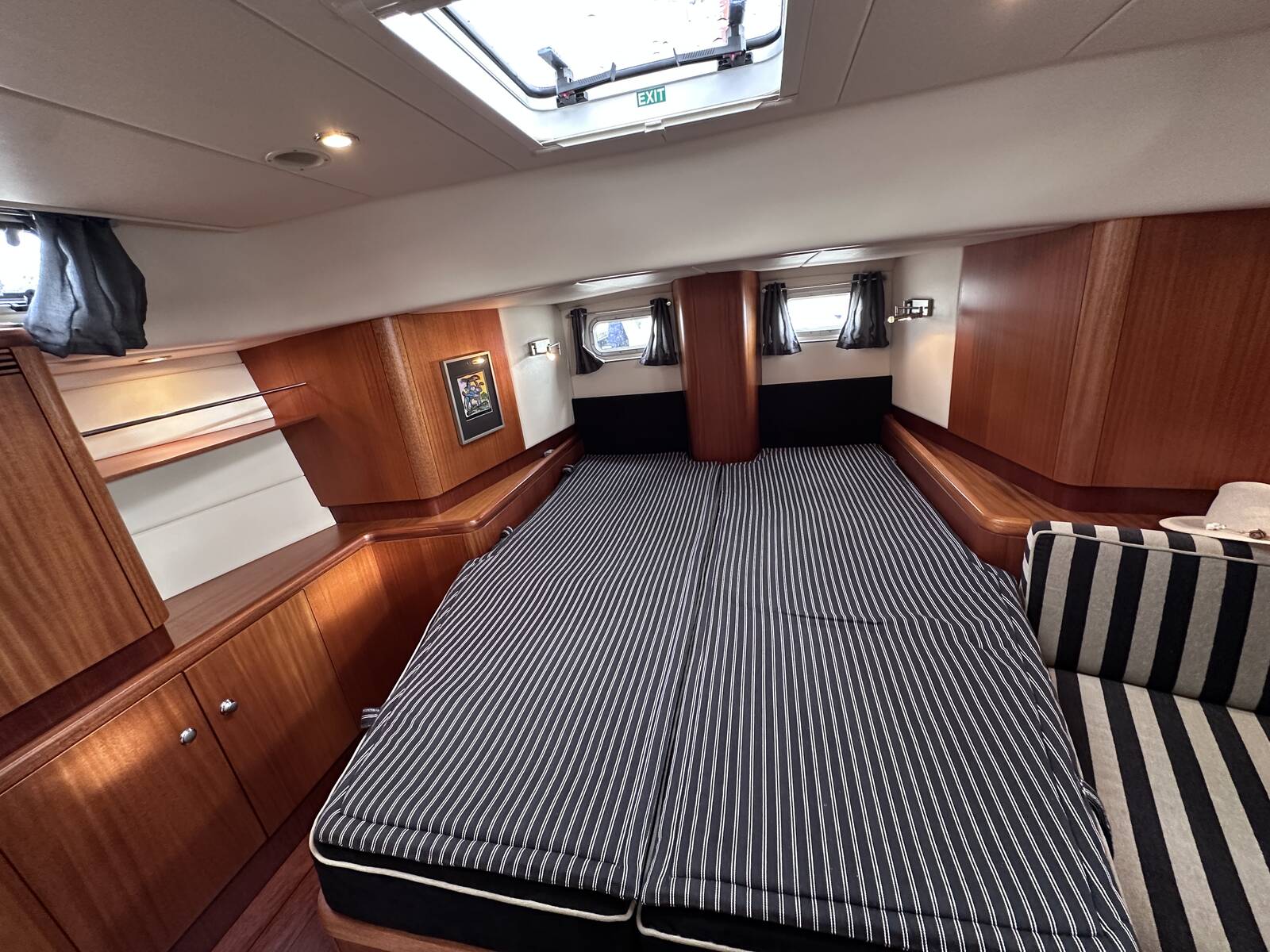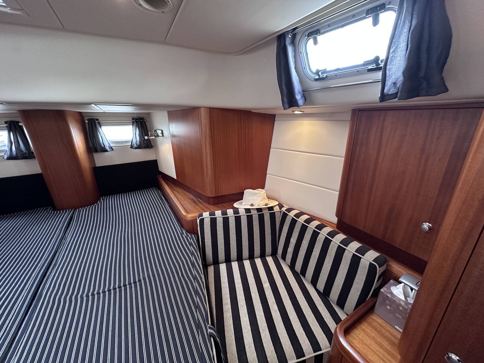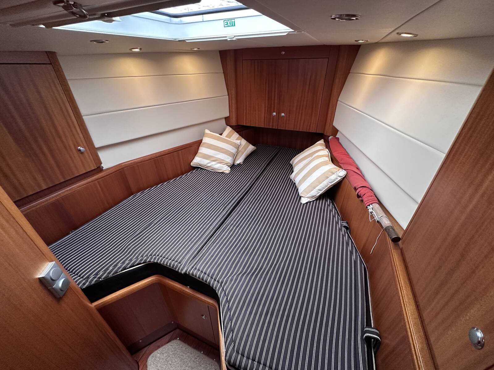Large vee berth with mattress protectors