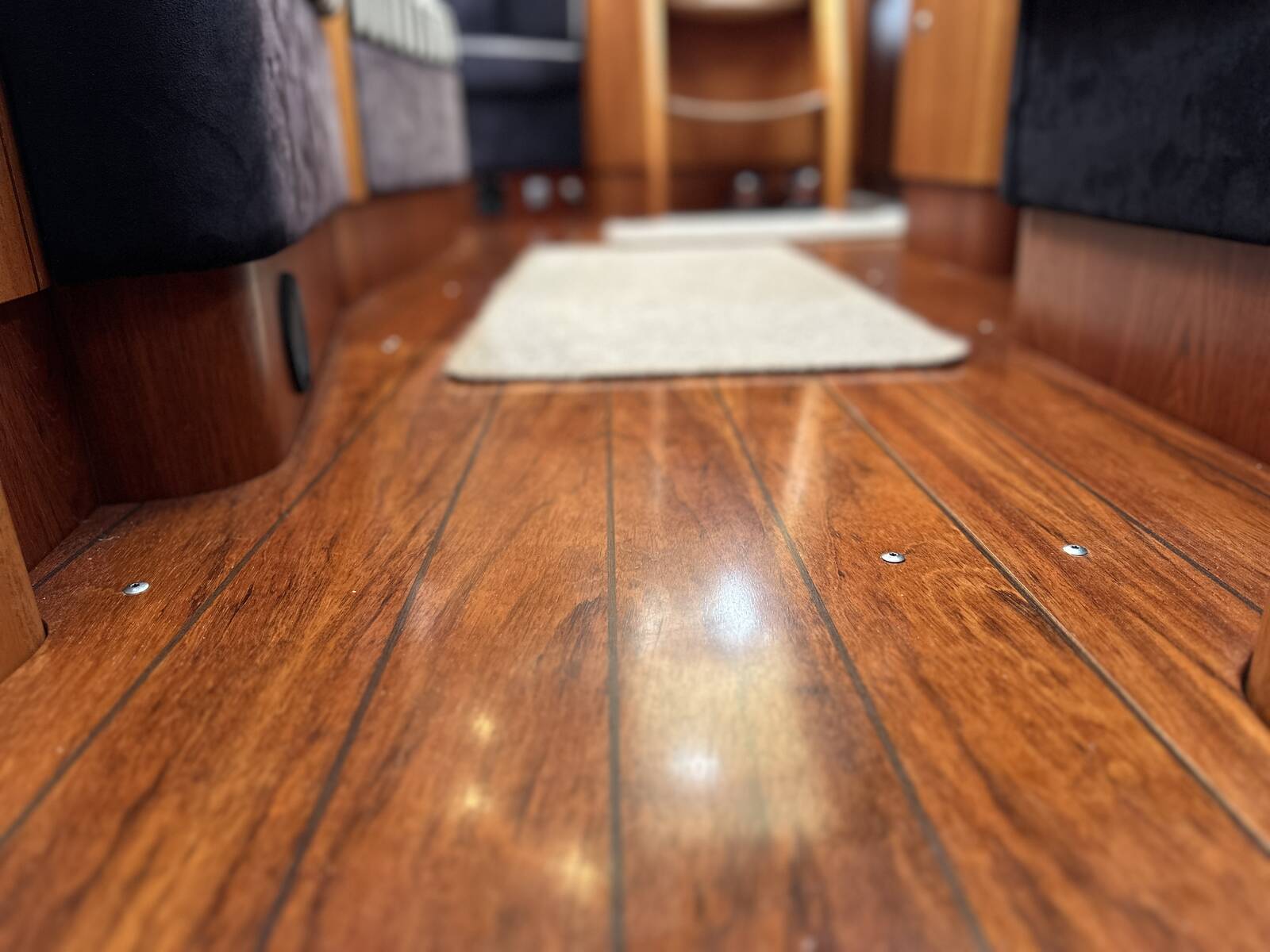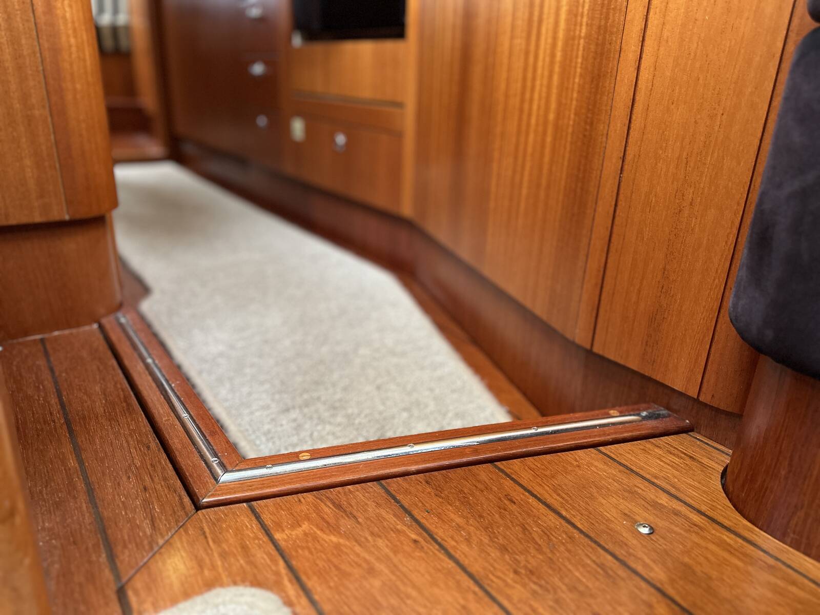 Teak grating on floor